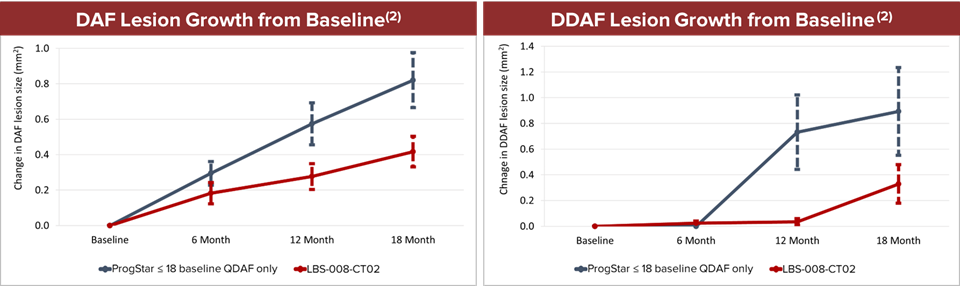 - LBS-008-CT02 subjects also exhibited a reduced expansion in DDAF lesion size from baseline
